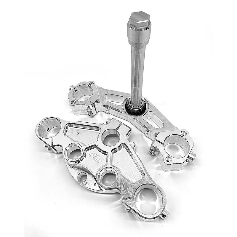 The Dominator Series of Triple Trees are available in Machine or Black Anodized finishes.