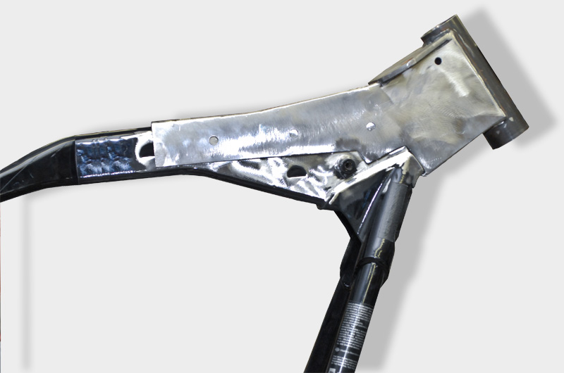 This kit can be installed with the motor in the frame (well protected during welding & painting of course). However, it doesn’t take much more to pull the motor allowing a full color match paint job on the frame.
