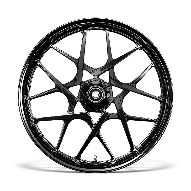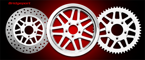 The Bridgeport will enhance the look of your bike like nothing else! This intentionally geometric 14-spoke wheel looks fantastic with its angular 3D machined spokes and extensive machining on the rim. The Bridgeport Wheel is a robust spoke design which sets a dramatic look on any touring bike or custom build alike. The Bridgeport is available in sizes 16" to 32" and that includes the latest 18, 21 & 23 x 5.5 Wide Tire Front Wheels. The Bridgeport has matching true floating brake rotors in 11.5,11.8, 13 & 18-inch sizes and matching air filters, pulleys and sprockets are available