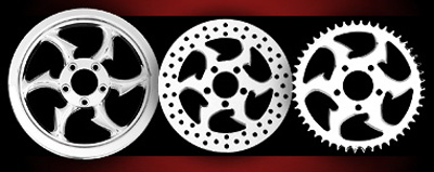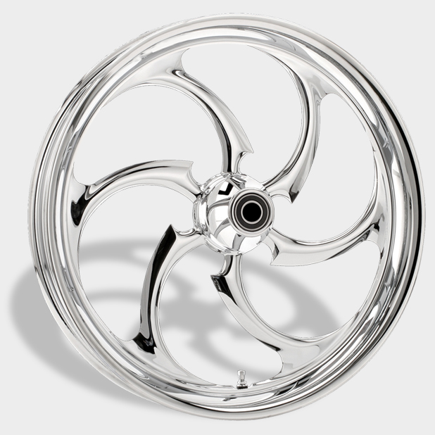 The Venice looks amazing on just about any bike with its 6 spokes that have edge to them. The hard lines contrast the smooth lip rim used on all Renegade Wheels. Personality, visually stunning despite having two rotors attached. Simplistic, understated lines complement any bike. Direct bolt on, matching air cleaner, rotors and pulley are available. Please allow 4-6 weeks for delivery of wheel orders or call for availability before ordering.