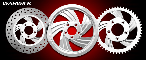 The Warwick pronounced; (war-Ä­ck) is one tough looking swept 5-spoke wheel. Every spoke appears to be three uniquely layered blades on top of each other. The Warwick spokes generate a look that embodies movement, even at a stand-still. Available up to and including 30” in diameter.