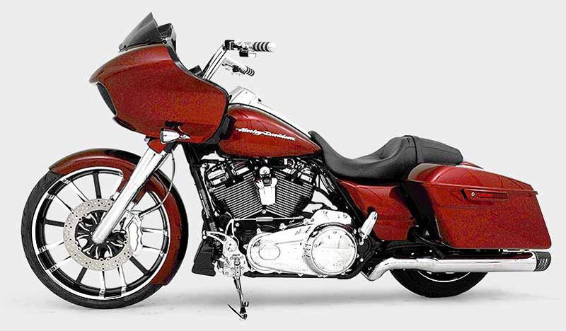 Build #57 17 Road Glide, HHI Bomber Lower Legs, HHI Steel Wrap Fender, HHI Billet Tapered Smooth Fork Covers, 12" HHI Speed King Internally Wired Handlebar System, HHI Slotted Forward Controls. HHI 6 Piston Caliper, Renegade 23" Chrome Logan Wheel & Matching Rotor, Freedom True Dual Right Side Under Exhaust