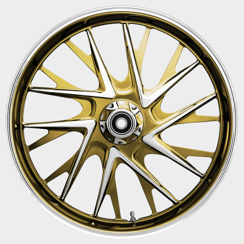 The Newton is a uniquely designed multi-spoke wheel from HHI / Renegade  Custom Wheels. Direct bolt-on with matching air cleaner, derby cover, sprocket and pulley are available.