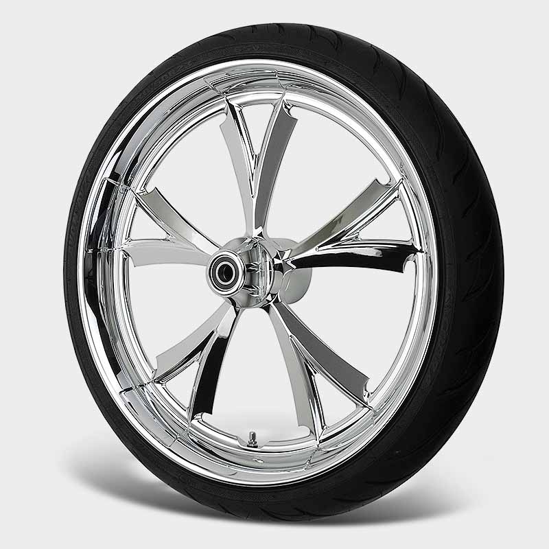 Delivered in a full range of sizes from 16 to 32 inches this wheel is available in Chrome and Black. Matching brake rotors in 11.5, 11.8, 13, ,& 18 complete the package.
