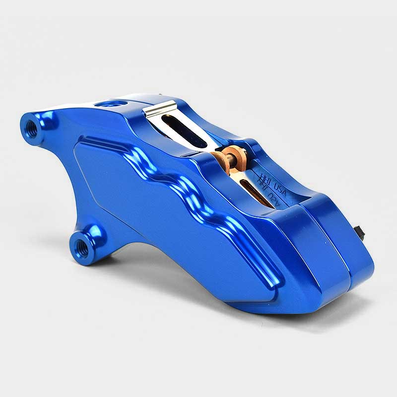 Dual Disc 6 Piston Caliper Kit for 13" rotor applications. Hawg Halters, Inc. offers a complete line of performance 6 piston brake calipers for the H-D aftermarket engineered for maximum braking and show quality looks. Manufactured from 6061 billet aluminum, all of our front calipers are a direct bolt on for 1984 and up models. Billet aluminum has better strength to weight ratio compared to cast aluminum and direct bolt on provides the most rigid and cleanest attachment method of mounting.