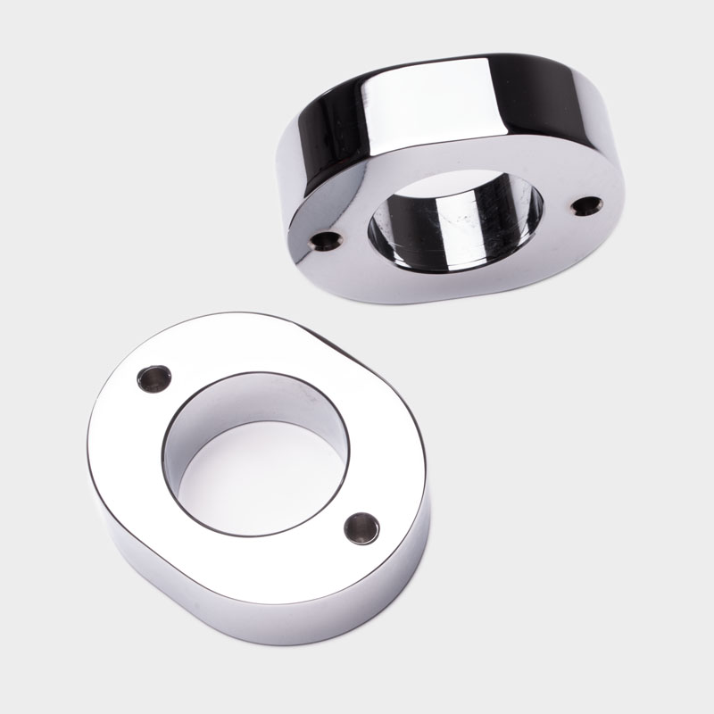 1" Fork Cover Spacer kit, fits all Harley Davidson Touring models 1984 and up. Available in chrome or black finish. Choose options below.