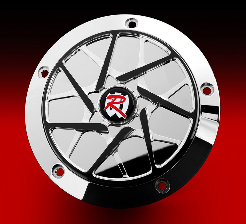 The Renegade Derby Cover is a stunning two piece engineered design. This allows our customers to choose the perfect combination of finishes to complete their bike with. The Derby Base Plate and the Derby Cover are machined from T6061 aircraft aluminum by craftsmen here in the USA. Both the base & cover come in show chrome or black anodized phantom cut and of course we offer cover designs to match all our Renegade or HHI wheel designs.