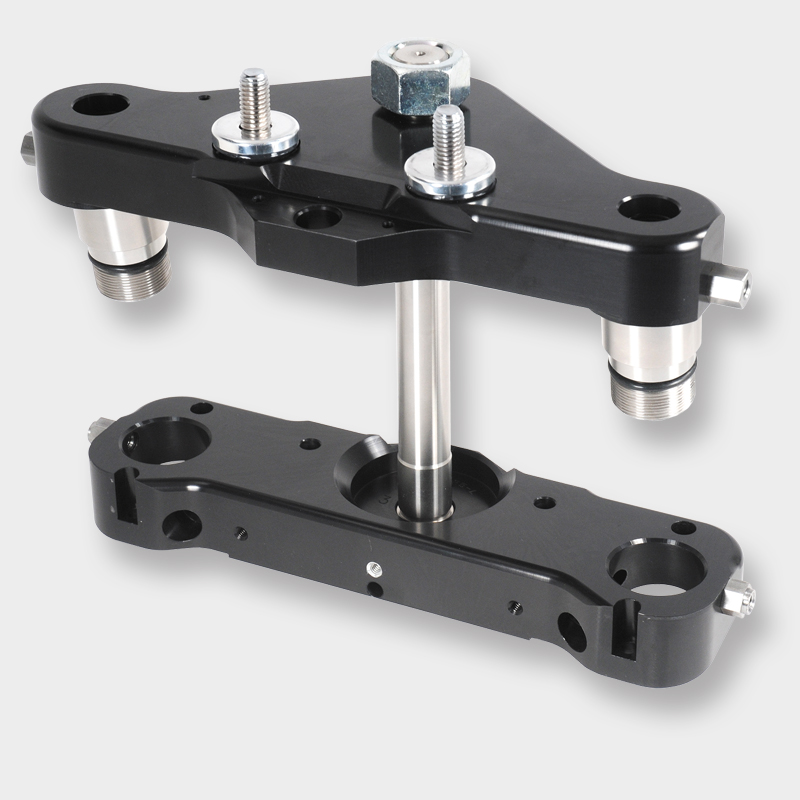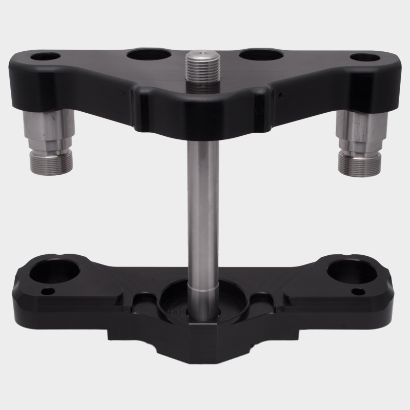 HHI FL Triple Trees are made for use in custom touring model applications. These trees are only for use with installation of 26" or 30" wheels in conjunction with our weld in neck piece. The proper length insert/extension for each sized wheel is included with tree options below. Available in raw machine or black anodized finish.