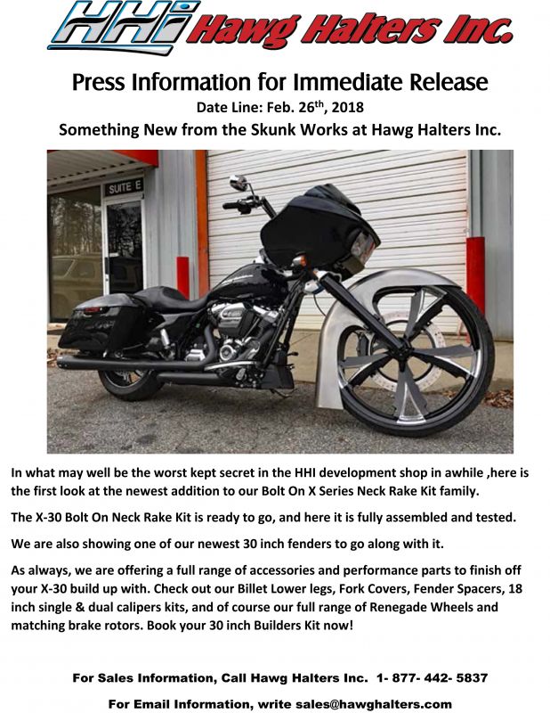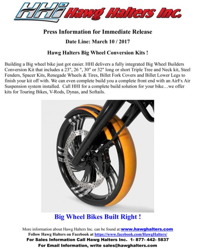 Hawg Halters Inc. continues to lead the way in Big Wheel Conversion Kits with the launch of their New Custom Softail Neck Rake Builders Kit.