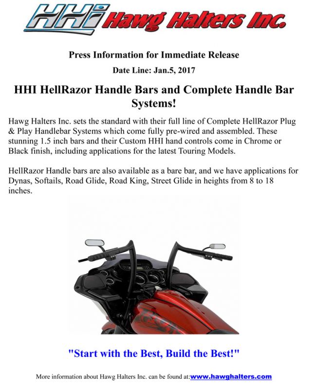Hawg Halters Inc. continues to set the benchmark for quality, performance and styling with their unique, custom built HellRazor Handle Bars.