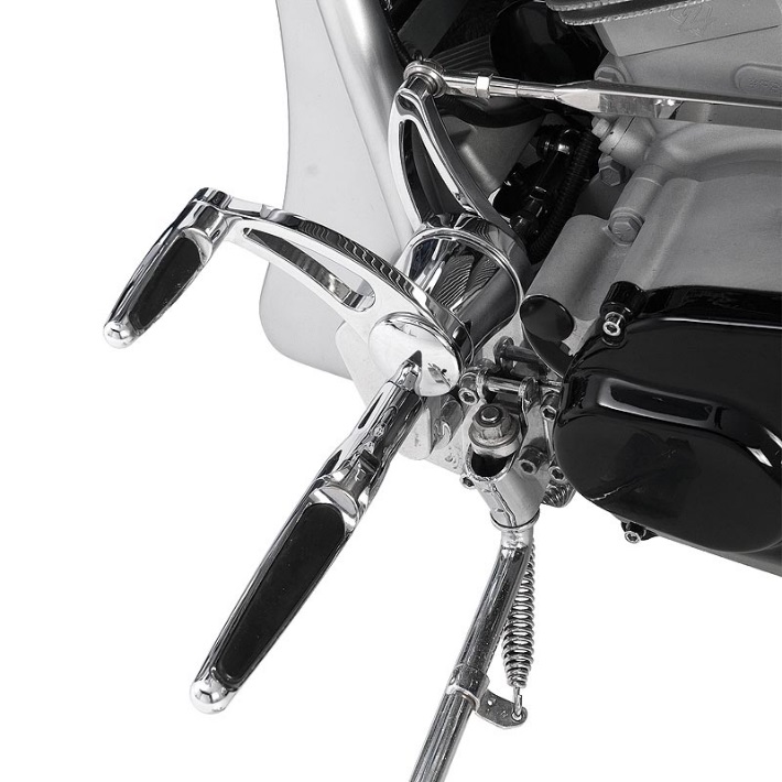 Available in Black, Chrome and Phantom Cut these classically designed controls come in both standard and extended versions with an assortment of optional foot pegs and designs.  Mechanically the HHI Forward controls feature the clean technical design you expect from the Dahlonega, Georgia based company and they incorporate such features as dual sealed ball bearings which provide a smooth positive actuation for many miles of safe riding.