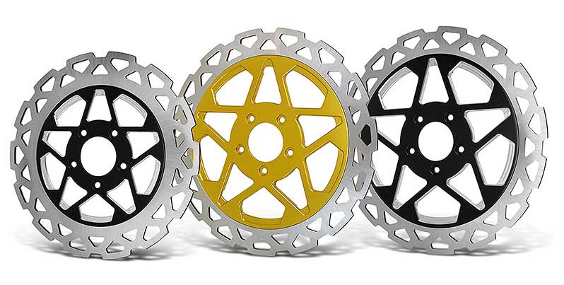 These Precision Rotary Ground, heat treated 420 Stainless Steel Rotors feature a unique Pentagram cut-out on the friction ring that delivers improved heat dissipation and a lighter weight than a standard brake rotor.